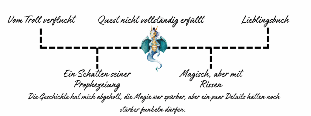 Wie oben schon erwähnt, befinden wir uns nur für wenige Tage in dieser Fantasywelt. Auch wenn die Welt und die Magie kurz umrissen werden, liegt der Kern auf der Mission/Quest und dem Zusammenspiel der vier Protagonisten. Eine große Charakterentwicklung oder eine tiefer Einblick ins Worldbuilding darf man sich nicht erhoffen. Trotzdem darf man sich auf immer neue Überraschungen freuen. Sei es durch eine neue Information zu den Personen oder aber durch Entdeckungen, die sie machen. Vor allem letzteres sorgt dafür, dass man das bisher Geglaubte infrage stellen muss. Während sich unsere vier Helden bei der Frage, was denn nun die Wahrheit ist, nicht einig sind, wurde es mir als Leser schnell klar, wem ich glauben schenken sollte. Ein bisschen längeres in der Luft schweben bei der Frage, hätte ich mir gewünscht. Trotzdem ist es bis zum Ende nicht ersichtlich, ob die Mission scheitert oder nicht. Ob die Helden ihre Welt retten oder ob sie zerstört. Und am Ende muss sich der Leser auch fragen, was das moralisch richtige ist.